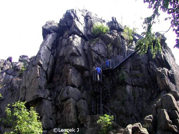 skałki idealnie nadające się na wspinaczkę. Granitowe ściany skalne są wręcz oblegane przez amatorów mocnych wrażeń. Trenowali tu m.in. wybitni polscy himalaiści - Wanda Rutkiewicz i Jerzy Kukuczka. Góry Sokole tworzą dwa wzniesienia - Sokolik (642 m n.p.m.) i Krzyżna Góra (654 m n.p.m.). Bez problemu dojdziemy tu spokojnym spacerem, a na szczycie Sokolika czeka na nas platforma widokowa, z której zobaczymy przepiękną okolicę. W Góry Sokole dotrzemy pieszo, np. Europejskim Szlakiem Długodystansowym lub